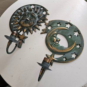 The sun and the moon candle stick holders wall decor item is used in good condition as shown.