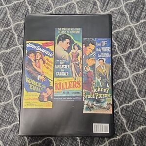 Awesome book filled with graphics and posters from the classic era of film Noir. The back of the books seam is coming apart at the top as seen in pics
