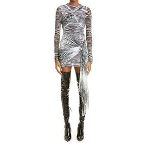 Steeped in going-out glamour, this semisheer minidress features a twisted, layered silhouette that's dynamic and daring.
