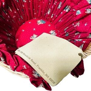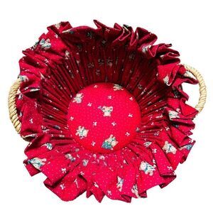 The Basketcases Christmas Teddy Basket, collectible . Woven basket hand lined with red festive holiday teddy bear fabric. In great condition one handle is a little loose but it’s not designed to be used to carry . Lovely little holiday candy basket .