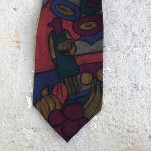 Beautiful silk tie that is in very good condition. Hundred percent silk made in the USA. Measuring at its widest point is 3.75 inches. Colors are muted