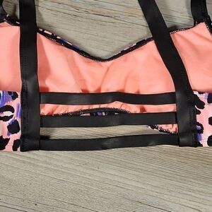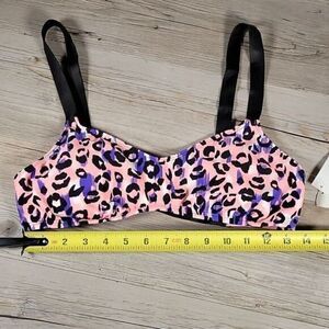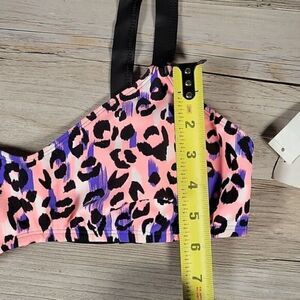 This pullover bandeau swim top from The Bikini Lab has a lovely festival scene printed on it in purple & blue. Removable pads. Content: nylon, spandex, polyester. Care: hand wash, line dry