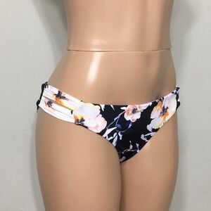 THE BIKINI LAB True Watercolors Double Sash Side Hipster. Beautiful floral pattern. Ruched side tabs. Fully lined. Hygiene liner intact.