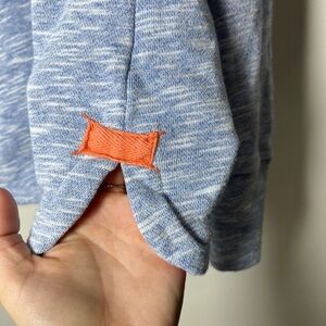 Great transition weather piece! Cowl neck pop over sweatshirt. Terry cloth interior. Perfect for cool days and nights. Think spring break in Martha's Vineyard. Also a subtle wink to your Taylor Swift fandom. Light fade to orange edge detail, no other flaws.