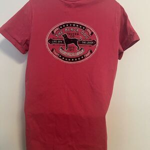 Vibrant red tee featuring The Black Dog logo. Comfortable and stylish.