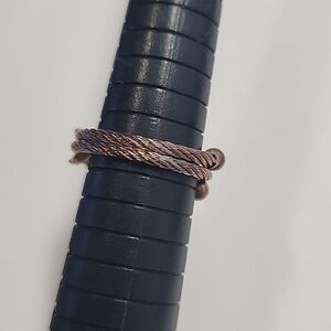 Handcrafted in solid copper ion-plated with 18K rose gold, and over 1 carat of genuine white topaz. 2 magnets. Adjusts easily to fit!