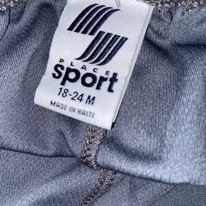 This listing is for a pair of The Children’s Place Sport brand athletic shorts in a toddler’s size 18/24 months. These gray shorts feature a graphic “72” design on the front left thigh, and an elastic waist.
