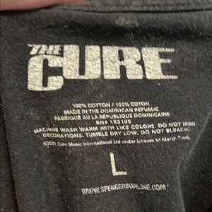 The Cure Band Music Black Distressed Graphic T-Shirt, size large. Please note; has signs of wear.