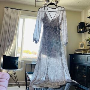 Wrap style dress with detachable Slip lining. Outer dress wrap is sheer. NWOT