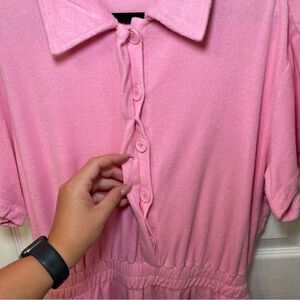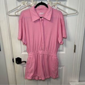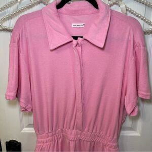 The Good American Terry Cloth Cinched Waist Pink Romper Short Sleeves