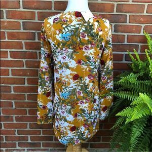 The Hanger mustard yellow floral tunic. Lace up neckline. Size small. NEW with tags. Wide sleeves.