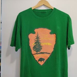 Green The Hundreds T-Shirt. Screen printed Camp Rosewood graphic on front. Very good condition, no major flaws. See photos for details. Width-20" Length-26"