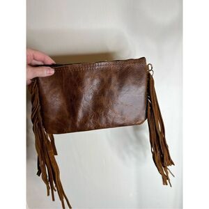 Brand new never used leather fringe with hair hide bag Esther Wristlet strap
