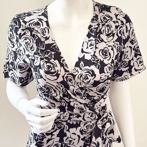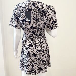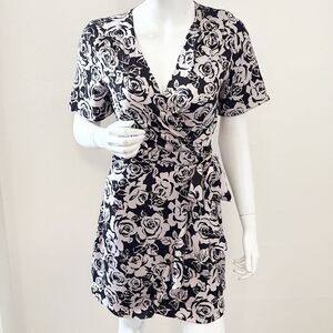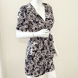 The Kooples Blooming Roses Black & Blush Floral Short Sleeve Mini Wrap Dress