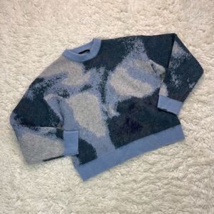The Kooples Jacquard Mix Cropped Blue Abstract Sweater