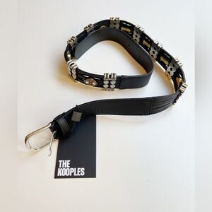 The Kooples black Leather embellished silver, gold, crystals Belt with rivets