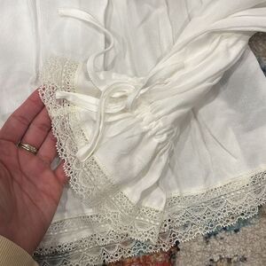 wriat sizing is adjustable. lace trim around top and arms and bottom. size small US.