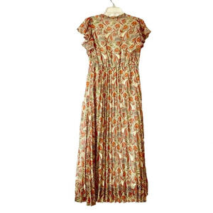 TheKorner Floral Midi Dress fully lined color rust size S neck cap sleeve