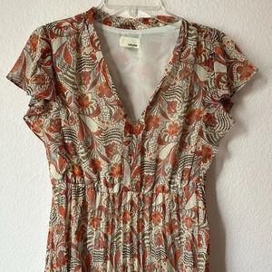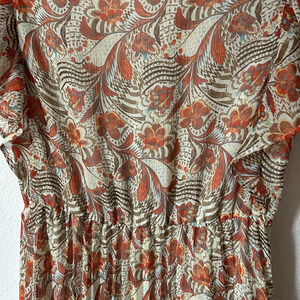 TheKorner Floral Midi Dress fully lined color rust size S vneck cap sleeve