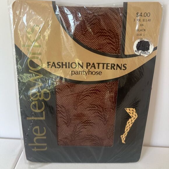 The Legwork’s Fashion Patterns Pantyhose Black Feathers Mesh Sz 1 S-M NISP