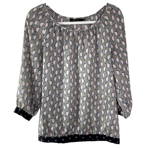The Limited Semi Sheer Tan Papillon Bird Blouse, size small
