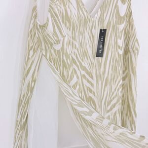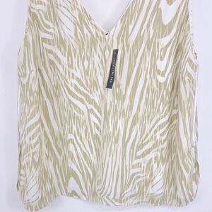 The Limited Tan Zebra Animal Print V Neck Slit Sides Lightweight Tank Blouse NEW