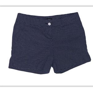 Navy blue with small white polka dots. 2 slash pockets in front. 5in inseam. In good condition