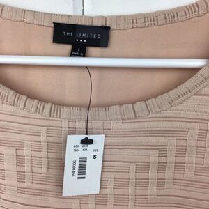 NWT (New with tags) The Limited light peach layered top with a steps (zig zag) repeated design. Size - Small. The back has a really cute slit that exposes the slightly sheer underlayer. Scoop neckline. 92% polyester, 8% spandex. Beautiful top...perfect for Spring and Easter! #bateau neckline