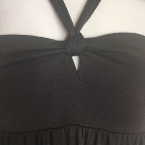 Espresso brown empire tie-neck knit maxi dress. Women’s size medium, cotton-poly blend, easy-care, machine wash. 16" armpit to armpit, 47" top of bust to hem. Gently worn, some light pilling, no damage or condition issues. See pics for details
