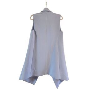 Beautiful, structured sleeveless tunic duster vest in baby blue with front draping