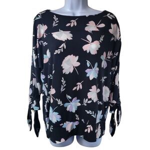 The Limited floral-print boatneck top with split tie sleeves / Women's Medium