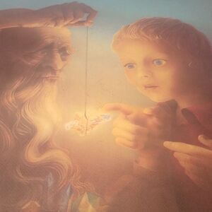 The Moody Blues vinyl record with a mystical cover art. Features a blend of blue and brown tones.
