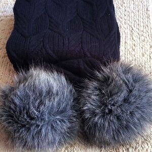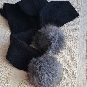 The North Face Black Scarf with Gray Pom Poms