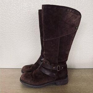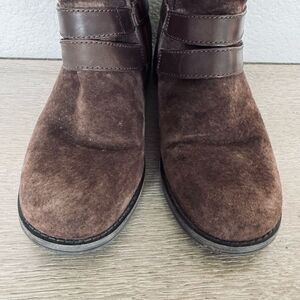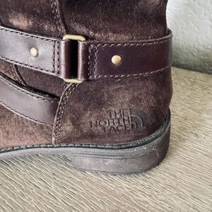 Women’s size 8 The North Face solid brown suede leather winter boots with side zipper in great preowned condition with minimal signs of wear. Thick and warm. Has some peeling as shown along the inside. Clean nonsmoking home.