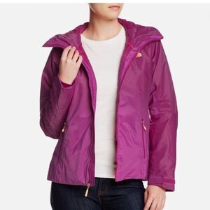 Bold fuchsia jacket with hood. Perfect for outdoor adventures.