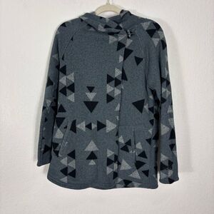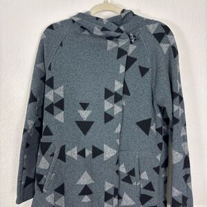 Great pre-owned condition The North Face Grey with Triangle Print Fleece Lined Overlap Hooded Sweatshirt