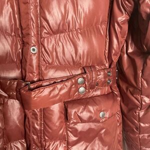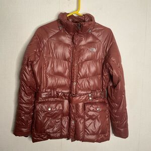 This The North Face Jacket Women Large Burned Maroon Goose Down 550 Puffer Coat Quilted Belted