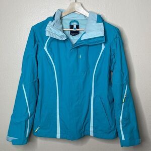 The North Face Jacket Women's SP Blue Full Zip Hooded Pockets HyVent Outdoors