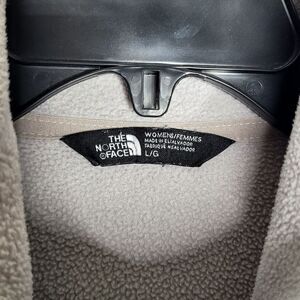 Light gray fleece by The North Face. Full-zip design with side pockets.