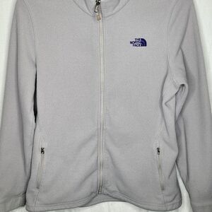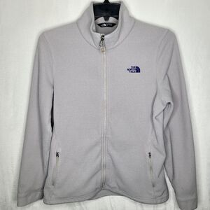 The North Face Light Gray Purple Logo Full-Zip Fleece Size Large