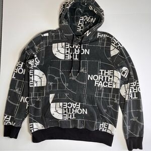 The North Face Men's Half Dome AOP Black and White Allover Print Logo Pullover Sweatshirt Hoodie