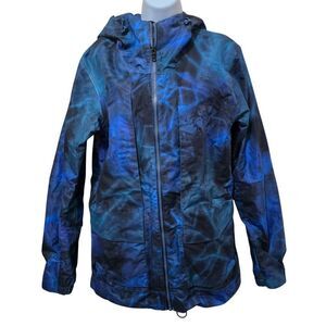 The North Face Mens SP Hooded Waterproof Jacket Blue/Black Geometric Pattern ski