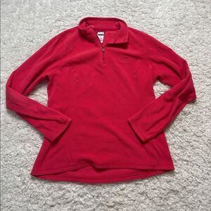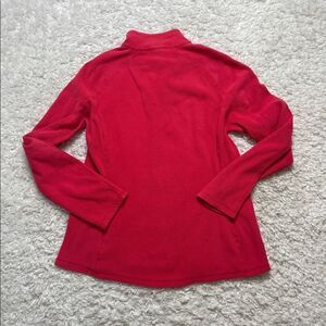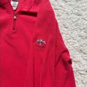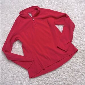 This is in excellent condition! It is very comfortable and flattering. Fleece. Quarter zip. Great on its own or layered. Logo on sleeve.