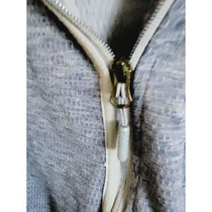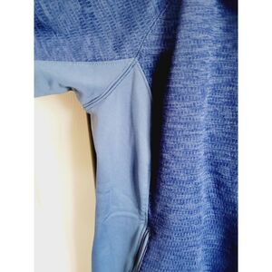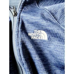 The North Face XL Navy Blue Zip Up Hoodie Thermal Jacket is a solid pattern, long sleeve, full zip hoodie made of polyester knit fabric. It features pockets and a zipper accent. The hoodie is machine washable and suitable for winter, summer, fall, and spring seasons. The North Face brand is known for its outdoor and classic themes. This hoodie is perfect for activewear occasions and fits regular size type for women.