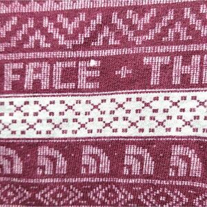Size small. In great pre-owned condition. Has one little miss print spot that is pictured - on the back of the sweater.