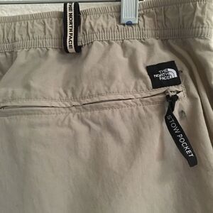 Features 2 front zipper pockets, 2 front regular pockets, one back zip pocket, drawstring elastic waist
