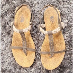 Silver and brown leather and cork thong gladiator sandals . Sz.6 fits like a 7