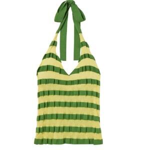 TheOpen Product 1/Small Stripe Halter Neck Tank Top Green Yellow Sleeveless