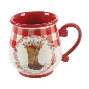 The Pioneer Woman Boot 16 ounce Gingham latte mug