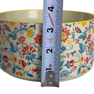 Brighten up your kitchen with this gorgeous Pioneer Woman Mazie Round Ceramic Bowl featuring a vibrant red, blue, and yellow floral pattern with a sunny yellow rim. 🌸